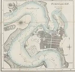 Im Sechsten Türkenkrieg von 1787 bis 1792 eroberte Russland die bis dahin unter osmanischer Oberhoheit stehende Nordwestküste des Schwarzen Meeres. Noch vor dem Frieden von Jassy gründete die Zarin Katharina II. am 7. September 1789 die Stadt Nikolajew als neue Marinebasis und Admiralität (bis 1898) der Schwarzmeerflotte in der Nähe einer alten griechischen Siedlung. Der Generalgouverneur Fürst Potjomkin beauftragte den Brigadier Michail Falejew, den „ersten Bürger der Stadt“, mit dem Aufbau der Stadt und der Werft. 1897 wurde im Ort eine Straßenbahn eröffnet, die bis heute eine Säule im öffentlichen Nahverkehr darstellt. Bei den Oktoberpogromen im Jahre 1905 verwüstete der Mob einen Großteil der jüdischen Viertel der Stadt und ermordete neun Juden.[3]
