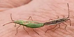 Die Wanzen werden 6,5 bis 9,0 Millimeter lang.[2] Sie haben einen langgestreckten, schlanken und weitgehend unbehaarten Körper, der ihnen Ähnlichkeit mit Weichwanzen (Miridae) verleiht. Es gibt bei den Männchen zwei Farbmorphen. Eine grüne, rot gemusterte und eine braune. Die Weibchen sind fast[2] immer grün. Letztere können auch durch ihre größeren Körper und den ovaleren Körperbau von den Männchen unterschieden werden. In der Regel haben die Tiere verkürzte (brachyptere) Flügel,[3] voll geflügelte (makroptere), flugfähige Tiere sind selten.[2]