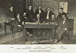 Zuvor war das seit dem 21. Juni 1883 eigenständige Blatt Beilage der Zeitung Politik. Erster Chefredakteur der Národní politika war Josef Hubáček, zuvor bei Hlas Národa (Stimme des Volkes) tätig. Ihm folgte 1885 Josef J. Toužimský, danach Ludvík Bratršovský, von 1905 bis 1927 Václav Beneš-Šumavský und ab 1927 Josef Janda. 1938 wurde Václav Crha Chefredakteur, 1943 Jan Scheinost.