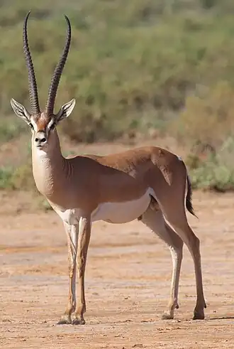 - ↑ a b Nanger granti in der Roten Liste gefährdeter Arten der IUCN 2016. Eingestellt von: IUCN SSC Antelope Specialist Group, 2016. Abgerufen am 23. November 2022.