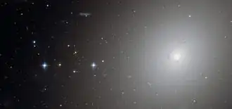 | Hochaufgelöste Aufnahme der elliptischen Galaxie NGC 4696, erstellt mithilfe des Hubble-Weltraumteleskops | |