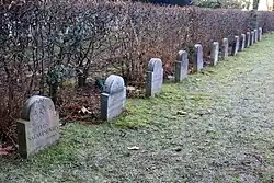 Auf dem Hauptfriedhof Bochum ruhen 1720 Zwangsarbeiter, unter anderem stammen sie aus Polen, Sowjetunion, Jugoslawien, Belgien und Frankreich.[28] An den drei Gräberfeldern erinnern Gedenksteine und ein eisernes Gedenkbuch an die Toten. 54 Gräber von jüdischen Zwangsarbeitern befinden sich auf dem Jüdischen Friedhof Wasserstraße in Bochum. Auf dem Blumenfriedhof wurden schon nach dem Ersten Weltkrieg fremde Soldaten begraben. Bei den russischen Gräbern wurde auch 307 Zwangsarbeiter aus der UdSSR begraben, seit 2019 erinnern Gedenktafeln an diese Opfer.