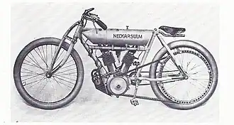 Bereits 1904 stellte NSU ein Rennmotorrad vor, die 7 PS mit wassergekühltem V-Motor und 907 cm³ Hubraum. Das wenig erfolgreiche Modell wurde 1908 von zwei luftgekühlten Varianten mit 793 und 1004 cm³ Hubraum abgelöst.