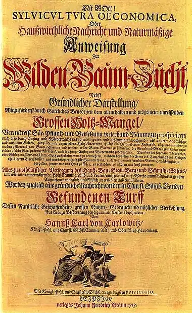 Der Begriff Nachhaltigkeit wurde 1713 vor dem Hintergrund einer zunehmenden überregionalen Holznot von Hans Carl von Carlowitz (1645–1714), Oberberghauptmann in Kursachsen, verwendet: