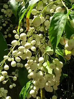 Die Frucht ist eine weiße, rundliche bis elliptische, mehrsamige Beere von etwa 0,8–1 cm Länge, die nur bis zu 8 texturierte, ungleichförmige Samen enthält.