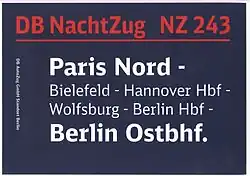 - ↑ Deutsche Bahn bleibt beim Nein zu Nachtzügen. In: Zeit online. 6. Dezember 2019, abgerufen am 8. Dezember 2019.