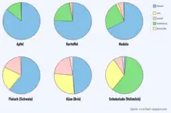 Lebensmittel können dem Zweck der Ernährung (Grundnahrungsmittel) oder dem Genuss (Genussmittel) dienen.[10]