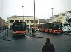 Die Haltestelle am Bahnhof lag direkt vor dem Haupteingang, wo sich heute ein Parkplatz befindet.