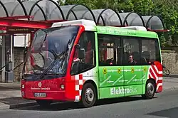 Das seit 2011 zuerst eingesetzte Modell war ein Minibus des Modells BredaMenarinibus ZEUS M 200 E. Zum damaligen Zeitpunkt war dies der erste im Linienbetrieb eingesetzte Batteriebus Deutschlands.[4] Aufgrund der Erfahrung, die mit den Batterien dieses Modells im Probebetrieb gemacht wurden, wurde die Reichweite in den Planunterlagen von 200 auf 150 Kilometer heruntergesetzt. Ab August 2013 kam ein Midibus des Modells PVI Oreos 4X hinzu.[5]