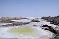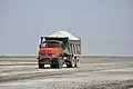 Aus dem zentralen Teil des Salzsees wird das dort gewonnene Salz über befahrbare Wege mit LKWs zum Verkauf in die Stadt Kaschan transportiert.[1]
