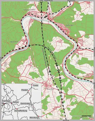 - ↑ Helmut Maak: Der Entwurf der Neubaustrecke Hannover – Würzburg, Streckenabschnitt hessisch/bayerische Landesgrenze – Würzburg. In: Die Bundesbahn. Jahrgang 53 (1977), Heft 12, S. 883–893, ISSN 0007-5876.