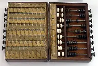 Nach einer Rekonstruktion hat Wilhelm Schickard die Stäbchen für seine – die erste – Rechenmaschine im Jahr 1623 verwendet, bei der die Addition der Teilprodukte mechanisch ausgeführt wurde.[2]