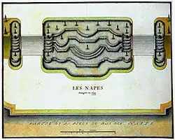 Die nappe d’eau ist ein wasserkünstlerisches Gestaltungselement. Im Gegensatz zur Kaskade oder zum Springbrunnen erfolgt die Wasserführung ebenmäßig und mit geringer Fallhöhe. Das Wasser darf dabei nicht spritzen, sprudeln oder lautes Rauschen verursachen, es sollte sauber und geruchlos sein. Nur eine präzise geformte Kante gewährleistet ein ruhiges Abfließen.
