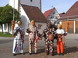 Narrenfiguren der Narrenzunft Bochingen: Schantle, Hansel, Narro, Bennerrössle