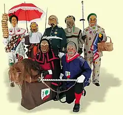 Narrenfiguren der Narrenzunft Aistaig: Narro, Hansel, Polizeischantle, Kropfer, Schantle, Bennerrössle
