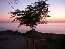 Wenige Meter vom Kiesstrand entfernt befindet sich ein Artemis-Heiligtum. Dieses Heiligtum wurde im 6. vorchristlichen Jahrhundert errichtet und hatte damals große ökonomische Bedeutung für die Insel. Danach wurde die Gegend eher gemieden. Der Tempel wurde vor ca. 150 Jahren von Einwohnern des heutigen Verwaltungssitzes der Gemeinde Christos Raches zerstört und die Steine für den Bau ihrer Kirche verwendet. Erste offizielle Grabungen fanden 1938 durch Leon Politis statt.