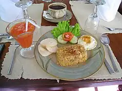 Nasi Goreng ist ein in Indonesien weit verbreitetes Reisgericht. Der Name stammt von nasi [] (indonesisch: gekochter Reis) und goreng [] (indonesisch: gebraten). Traditionell wird es als Rest vom Vortag meist schon morgens warm verspeist.