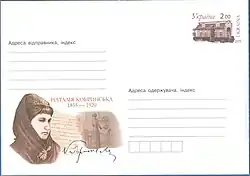 - ↑ Biografie Natalija Kobrynska ( des vom 5. März 2016 im Internet Archive) Info: Der Archivlink wurde automatisch eingesetzt und noch nicht geprüft. Bitte prüfe Original- und Archivlink gemäß Anleitung und entferne dann diesen Hinweis. auf der Webseite der ukrainischen Post zur Herausgabe eines Briefumschlags zu Ehren ihres 160. Geburtstages; abgerufen am 10. Mai 2017 (ukrainisch)
