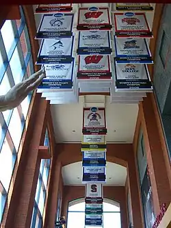 • Illinois - 2007 wurde Chief Illiniwek als offizielles Symbol abgeschafft. Sportmannschaften werden weiterhin Fighting Illini genannt.