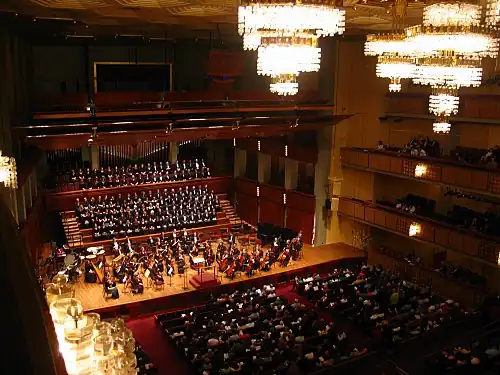 - ↑ Harold C. Schonberg: Kennedy Hall Gets Acoustics Workout. In: The New York Times. 2. September 1971, abgerufen am 11. Februar 2021.