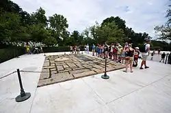Soldaten des 3. US-Infanterieregiments „The Old Guard“ standen bis 1965 Wache bei der Grabstätte, die bis heute von Menschenscharen aufgesucht wird. Aus diesem Grund wurde 1967 eine ca. 1,3 ha große permanente Grabstätte mit gepflastertem Zugang eröffnet. Die Propangasleitung zur Befeuerung der ewigen Flamme wurde durch eine fixe Erdgasleitung ersetzt. Die Flamme selbst ruht auf einer runden Granitplatte mit einem Durchmesser von 1,5 m, die von mehreren unregelmäßigen Granitplatten aus einem Granitsteinbruch nahe Kennedys langjährigem Wohnort am Cape Cod umgeben ist. Auszüge seiner Amtsantrittsrede sind auf weißen Marmortafeln eingraviert. Um das Erlöschen der Flamme durch Witterungseinflüsse zu verhindern, ist ein Gerät angebracht, das einen permanenten Zündfunken erzeugt und durch Zuführung von Sauerstoff das Rußen der Flamme verhindert. Am 23. Mai 1994 wurde Jacqueline Bouvier Kennedy Onassis neben ihrem Ehemann bestattet. Deren frühzeitig verstorbene Kinder Arabella Kennedy (*/† 23. August 1956) und Patrick Bouvier Kennedy (* 7. August 1963; † 9. August 1963) wurden bereits wenige Wochen nach Kennedys Tod exhumiert und bei ihrem Vater beigesetzt. Die letzte Ruhestätte von JFKs 1968 erschossenem Bruder Robert „Bobby“ Kennedy liegt nahe der seines Bruders[8], ebenso wie das Grab des 2009 verstorbenen jüngsten Bruders Edward „Ted“ Kennedy.