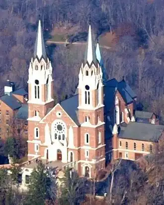 Die religiöse Bedeutung der seit dem 19. Jahrhundert Holy Hill genannten 410 m hohen Anhöhe westlich des Michigansees soll schon auf die Jesuitenmission des 17. Jahrhunderts zurückgehen. 1858 richteten deutschstämmige katholische Siedler auf dem Gipfel ein 4,60 m großes Eichenholz-Kreuz auf, das bis heute aufbewahrt wird. Es trägt die deutsche Inschrift „Ich bin das Leben. Wer an mich glaubt, wird selig.“ Um 1860 kam der gebürtige Franzose François Soubrio als Einsiedler auf den Hügel. Nach anfänglichem Misstrauen unterstützten ihn die Farmer der Umgebung. Die erste Holzkapelle am Ort mit dem Patrozinium Maria, Hilfe der Christen wurde am 24. Mai 1863 durch den aus Bayern stammenden und in Milwaukee geweihten Priester George Strickner[1] dediziert.