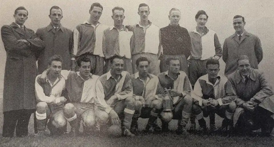 Kniend: Hans Treichler, Ernst Dubs, Gino Garzoni, Jack Bolli, Mundi Güdel, Werner Büche, Hans Kaiser[2]