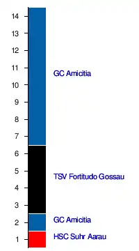 | 10. | GC Amicitia Zürich | 14 | 0 | 2 | 12 | 353:421 | −68 | 2:26 | |