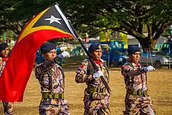 - ↑ Facebook-Auftritt des Staatspräsidenten Osttimors: Diskursu hosi Sua Exelénsia Prezidente Repúblika, Dr. Francisco Guterres Lú Olo iha okaziaun Serimónia Aniversáriu Polísia Nasionál Timor-Leste ba dala 19, 27. März 2019, abgerufen am 28. März 2019.