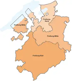 Freiburg-Mitte standen stets 2 Sitze zur Verfügung.