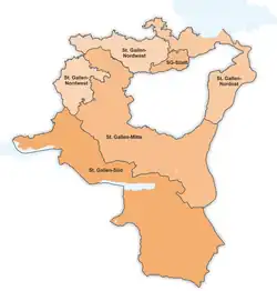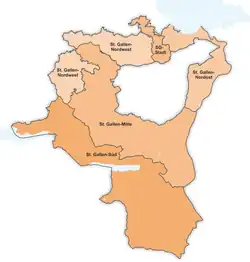 1919 wurden die fünf St. Galler Wahlkreise zum heute noch bestehenden Nationalratswahlkreis St. Gallen zusammengelegt, in welchem das Proporzwahlrecht gilt.