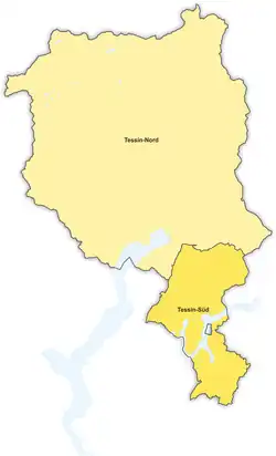 Zu einer letzten Gebietsveränderung kam es mit dem «Bundesgesetz betreffend die Nationalrathswahlkreise» vom 23. Juni 1911, indem die beiden zum Bezirk Bellinzona gehörenden Gemeinden zurück zum Wahlkreis Tessin-Nord gelangten.[4] Tessin-Süd umfasste zuletzt: