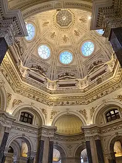 Der Architekt wurde von 1867 an in einem Wettbewerb ermittelt, an dem Karl Hasenauer teilnahm; der Kaiser ließ Hasenauers Pläne von Gottfried Semper begutachten, und Hasenauer gewann ihn zur Mitarbeit. Daraus ergab sich eine nicht immer harmonische Gemeinschaftsarbeit der beiden Architekten an beiden Museen.[17] Der Bau beider Hofmuseen begann 1871, sechs Jahre nach der feierlichen Eröffnung der Ringstraße; das Kunsthistorische Museum wurde 1891, zwei Jahre später als das NHM, eröffnet.