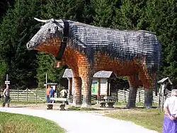 Direkt am Teichalmsee befindet sich der 6 m hohe und 10 m lange Almi, ein Holzochse, der ausschließlich aus Holz und 22.400 Holzschindeln erbaut wurde. Er weist auf die Nutzung des Almenlandes als Weidegebiet für den Almo, den Almochsen, dessen zartes Fleisch über die Region hinaus geschätzt wird.[1] Gleich mehrere tierische Schnitzereien bietet der etwa 1,5 Kilometer lange Holzskulpturenweg inklusive Lehrpfad von Nechnitz auf den Gschaidberg.[2]