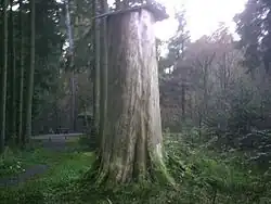 Im Mühlwald, einem Teil des Arboretums Freiburg-Günterstal, steht der höchste Baum Deutschlands,[25] eine Douglasie mit einem Stammumfang am Fuß von 300 cm und einer Höhe von rund 68 m.[26] Man gab ihr den Namen Waldtraut vom Mühlwald ⊙. Sie verwies damit im August 2008 die Eberbacher Douglasie auf Platz zwei, die Messungen beider Bäume wurde von einem Messteam des geodätischen Institutes der Uni Karlsruhe durchgeführt. Die vom städtischen Forstamt veranlasste Messung vom März 2017 ergab eine Höhe von 66,581 m.[27] Die Messung vom 19. November 2019 ergab 67,18 m.[28] Die Große Tanne in Bergöschingen bei Hohentengen am Hochrhein war ursprünglich 44 Meter hoch, bevor sie 2006 durch einen Blitzschlag beschädigt wurde und wegen Sicherheitsbedenken 2008 gefällt werden musste. Mit einem Umfang von 4,3 Meter und einem Alter von über 200 Jahren war sie der mächtigste Baum im Hohentengener Wald. Der Baum wurde drei Meter über dem Boden abgesägt, der Stumpf kann heute besichtigt werden.[29]