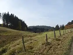 Am Ostrand des NSG fließt ein namenloser Bach zum Hilbringsen-Bach in den von Süden. Der Hilbringsen-Bach läuft im östlichen NSG-Bereich als wegbegleitender Graben. In den südlich angrenzenden beiden Viehweiden an einem nordexponierten Hang fließen hier drei Quellbäche zur Hilbringse. Die Bereiche um diese Quellbäche ist großflächig vernässt. Im östlichsten dieser Quellbereiche hat sich kleinflächig ein anmooriger Binsensumpf mit teils äußert seltenen basenliebenden Arten wie Torfmoosen, Seggen und Wollgras erhalten. Weiter westlich fließt ein Bach naturnah durch einen Erlen-Mischbestand. Zwischen diesem Bach und einen weiteren Quellbach befindet sich Magergrünland erhalten. Mitten im Magergrünland steht ein großes Ferienhaus. Dann folgt der Unterlauf einen Quellbaches, wobei der Quellbereiche des letzteren im Fichtenwald südlich des NSG liegt. Weiter bachabwärts schließen drei weitere Quellbäche an. Im Mündungsbereich des ersten Baches findet einen ausgedehnten Fieberkleesumpf. Auch hier anmoorige Bereiche mit Torfmoos und Seggen. An wechselfeuchten Stellen seitlich des Baches findet man drei unterschiedliche Stellen mit Borstgrasrasen. Ein angrenzender quelliger Bereich ist als seggenreicher Binsensumpf ausgeprägt. Auch am oberen Waldrand zwischen den beiden darauf folgenden Quellbächen hat sich ein mehr heidegeprägter Borstgrasrasen erhalten. Das bachbegleitende Nassgrünland ist auch hier teilweise seggenreich ausgeprägt. Die Quellbereiche liegen auch bei diesen beiden Bächlein jenseits des Weges im Fichtenwald. Der Hilbringsen-Bach verläuft unterhalb durch einen Fichtenwald. Auf Höher zweier Hütten mündet aus einem Nord-Süd-verlaufenden Tal der Quellbach Deitmecke in die Hilbringse. Die Deitmecke grenzt an einige Feuchtweiden an. Am westlichen Hang im Bereich der Einmündung der Deitmecke liegt ein größerer Borstgrasrasen. Bachabwärts verläuft die Hilbringse naturnah durch eine Feuchtweide, am Hang zum Weg ein weiterer Borstgrasrasenbereich.