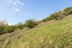 - der Erhalt, die Pflege, Entwicklung und Wiederherstellung der Biozönose „Kalkhalbtrockenrasen“ durch ein gezieltes Beweidungskonzept und manuelle Pflegemaßnahmen als Lebensraum, Refugial- und Vernetzungsbiotop für Lebensgemeinschaften der Trockenrasen, insbesondere für Schmetterlinge, sowie