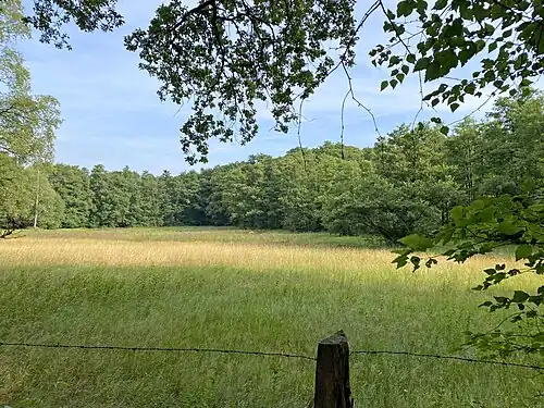 „ein Biotopkomplex aus Bruchwald, feuchtem Eichen-Birkenwald und anderen Laubwäldern sowie zumeist feuchten und nassen Grünlandflächen zwischen dem Hildener Stadtwald und Haan. Die nördlich eines von West nach Ost verlaufenden Weges liegenden Feucht- und Nasswiesen sind sehr arten- sowie seggen- und binsenreich.