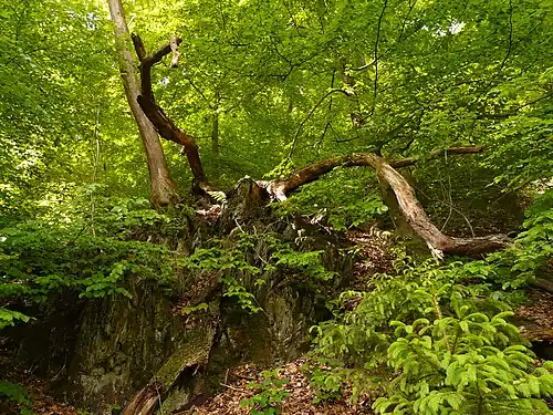 Totholz und anstehendes Gestein im NSG Wupper und Wupperhänge mit Seitensiefen | ||