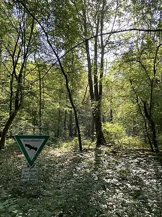 Esche, Flatterulme und Erlen werden als Relikte eines ehemals wesentlich feuchteren Bodens und höheren Grundwassers gedeutet. Dafür sprechen auch Vorkommen der Sumpf-Segge (Carex acutiformis) und des Breitblättrigen Dornfarns (Dryopteris dilatata). Der Umwandlungsprozess von diesem feuchten Wald zum heutigen trockeneren Boden ist Gegenstand der wissenschaftlichen Beobachtung in dieser Naturwaldzelle.
