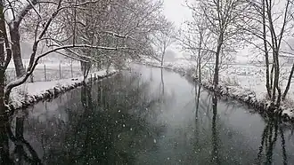 Zusammenfluss von Warmer (links) und Kalter Ach (rechts) östlich von Langenau
