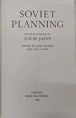 - Jane Degras (Hrsg.): Soviet planning : essays in honor of Naum Jasny. Oxford: Blackwell, 1964