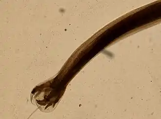 Hinterende mit Bursa copulatrix von Necator americanus | ||||||||||||