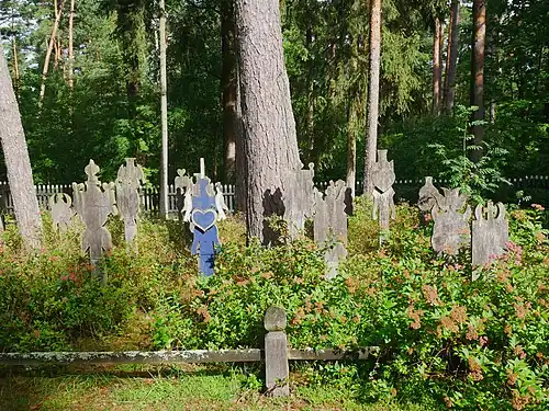 - ↑ Beispiel des touristischen Auftritts des ethnographischen kurischen Friedhofs in Nida (englisch)