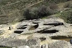 Neben der Kapelle, liegen auf einem sanften Hang 53 Felsgräber. Diejenigen aus der Mitte des 10. Jahrhunderts werden Tumba Olèrdolana genannt, sind anthropomorph und in den Kalksteinfels geschlagen. Die des 12. Jahrhunderts sind aus Platten und der Rest sind später angelegte eckige Sarkophage.