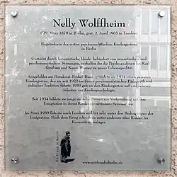 Nelly Wolffheim (* 29. März 1879 in Berlin; † 2. April 1965 in London) war eine deutsche Pädagogin, Gründerin des ersten psychoanalytischen Kindergartens in Deutschland und Fachpublizistin.