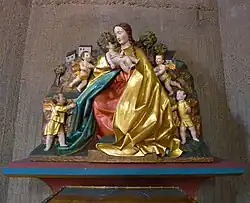 Die beiden Ölgemäldes von Dupuy, die Ludwig XIV. der Pfarrei geschenkt hatte, waren im Zweiten Weltkrieg zerschnitten worden und wurden von Ernst Sonnet aus Güdingen wieder restauriert. Die goldene Altarpredella wurde als Antependium des neogotischen Hochaltares verwendet.[30]