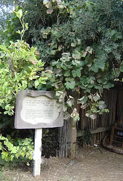 Neben der Bibel werden landwirtschaftliche Themen der jüdischen Tradition vorgestellt, hier: Die Mischna behandelt den Fall einer mit Weinreben berankten Laubhütte