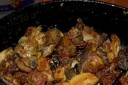 Wasserbüffel- und Schweinefleisch wird von vielen janajati (indigene Völker mit von Hindu-Normen abweichenden Gebräuchen) verzehrt. Ursprünglich aßen die Magars zwar Schweine-, jedoch kein Wasserbüffelfleisch, bei den sich auf den ersten Blick ähnlichen Gurung war dies umgekehrt. Bei den weiter im Osten lebenden Tamang, Rai und Limbu waren einzigartige Speisen darunter kinema (fermentierte Sojabohnen), yangben (Rentierflechte), Zubereitungen mit Bambussprossen, Brot aus Hirse oder Buchweizen und das traditionelle Getränk der Limbu, tongba (Hirsebier).[4][5]