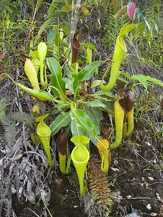 Nepenthes chaniana, Pflanze am Naturstandort | ||||||||||||